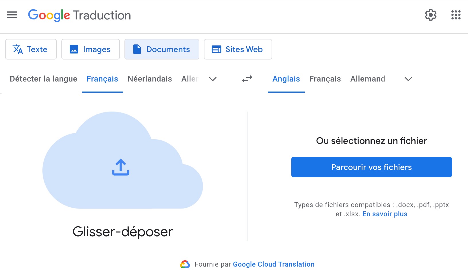 - Rendez-vous sur le site de Google Traduction dans votre navigateur web.